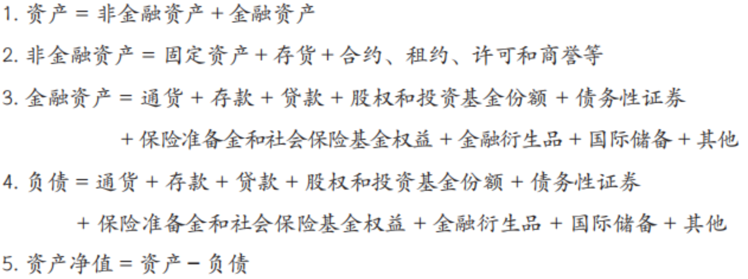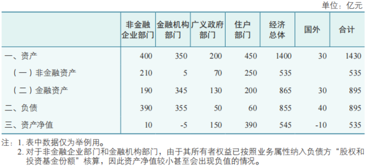 资产净值是全部资产减去全部负债后的差额,是一个国家或地区拥有的净资产,代表了财富水平。在国内各机构部门中,广义政府部门和住户部门是经济总体财富的最终所有者,按照国民经济核算原理(与企业会计资产负债记账不同),非金融企业部门和金融机构部门的所有者权益不记入其净资产,而是记入了广义政府部门和住户部门的净资产。