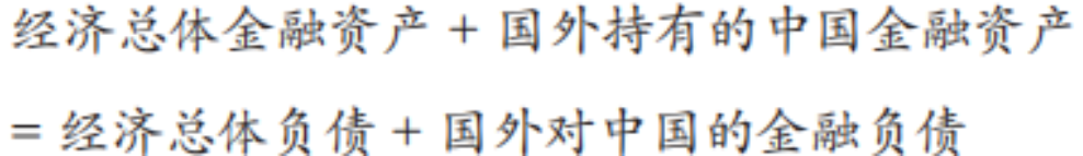 (二)外部平衡。即国内和国外之间通过不同金融工具形成的资金融通关系,对经济总体和国外而言,存在如下平衡关系: