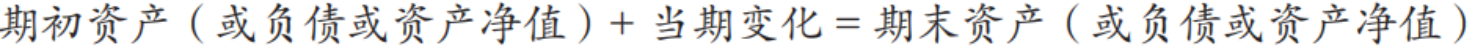 以上所有平衡关系都来自特定时点上的资产负债表。在经济运行过程中,资产负债关系是不断变化的,就一个核算期而言,通常有期初和期末两张资产负债表,将二者结果进行比较,就会形成一个动态平衡关系: