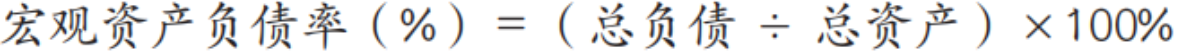 衡量债务风险主要利用宏观资产负债率和宏观杠杆率两类指标进行分析。宏观资产负债率是机构部门承担负债与拥有资产的比率,计算公式为: